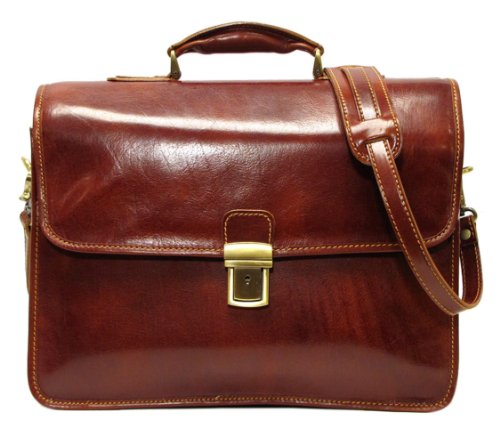 Floto Italian Leather Cortona Laptop Briefcase in Brown Overview